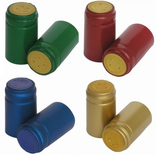 PVC Anschrumpfkapseln mit Abrisslasche für 0,75 oder 1 l Flaschen.