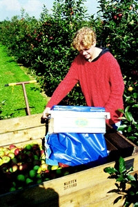 Gepflückten Früchte kann man leicht in größere Kisten entleeren lassen.